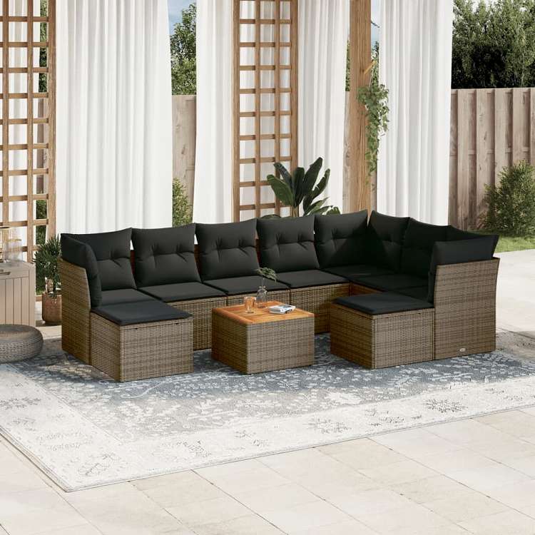 vidaXL ガーデンソファ10点セット クッション付き ポリラタン製 グレー家具 アウトドア家具 屋外家具セット(代引不可)