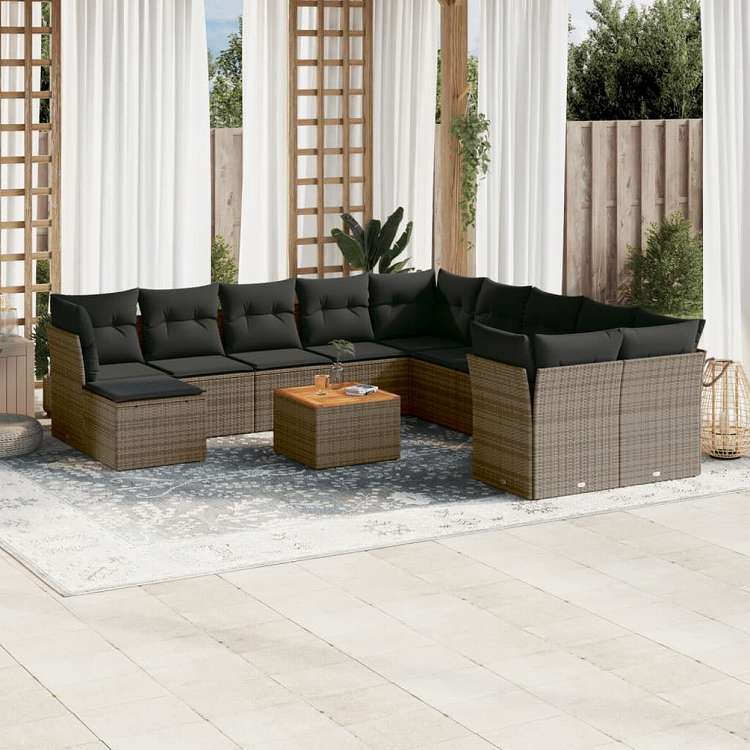 vidaXL ガーデンラウンジ12点セット クッション付き グレー ポリラタン製家具 アウトドア家具 屋外家具セット(代引不可)