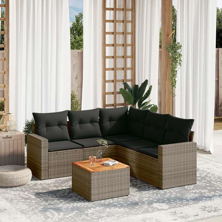 vidaXL ガーデンソファ6点セット クッション付き グレー ポリラタン製家具 アウトドア家具 屋外家具セット(代引不可)