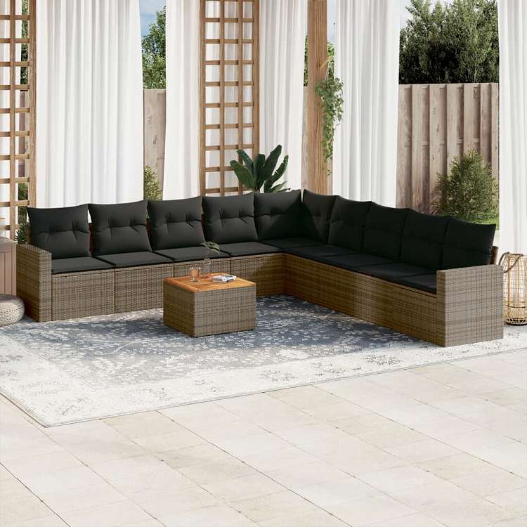 vidaXL ガーデンソファ10点セット クッション付き ポリラタン製 グレー家具 アウトドア家具 屋外家具セット(代引不可)