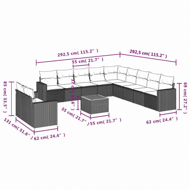 vidaXL ガーデンラウンジ12点セット クッション付き グレー ポリラタン製家具 アウトドア家具 屋外家具セット(代引不可)
