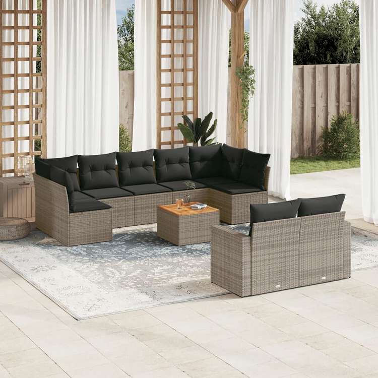 vidaXL ガーデンソファ10点セット クッション付き ポリラタン製 グレー家具 アウトドア家具 屋外椅子 屋外用組み合わせソファセット(代引不可)