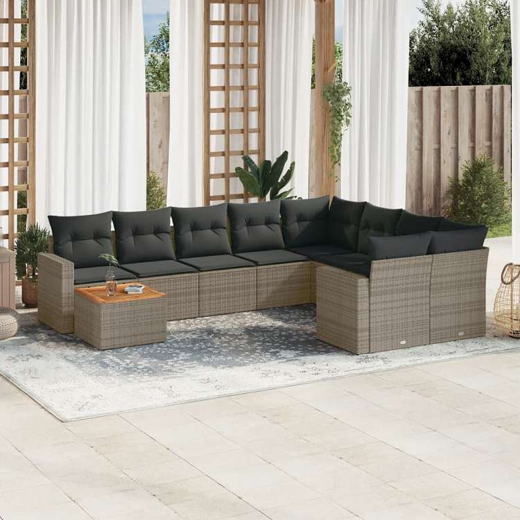 vidaXL ガーデンソファ10点セット クッション付き ポリラタン製 グレー家具 アウトドア家具 屋外椅子 屋外用組み合わせソファセット(代引不可)