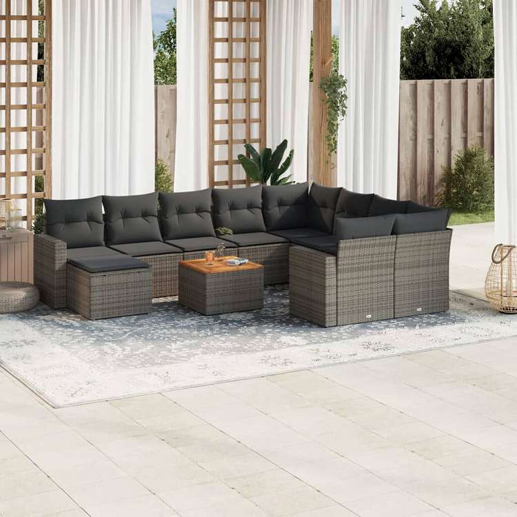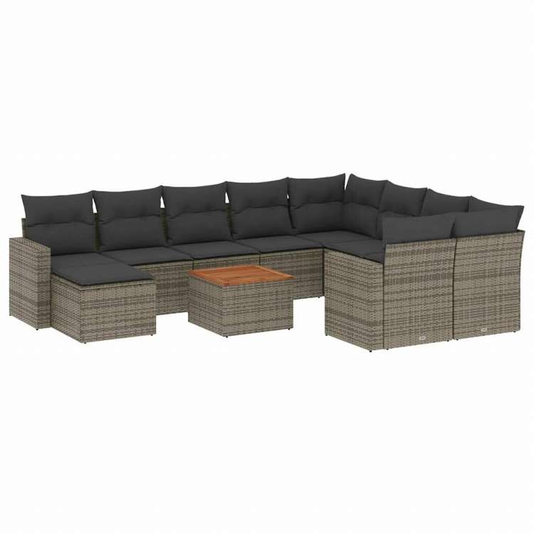 vidaXL ガーデンソファ11点セット クッション付き ポリラタン製 グレー家具 アウトドア家具 屋外椅子 屋外用組み合わせソファセット(代引不可)