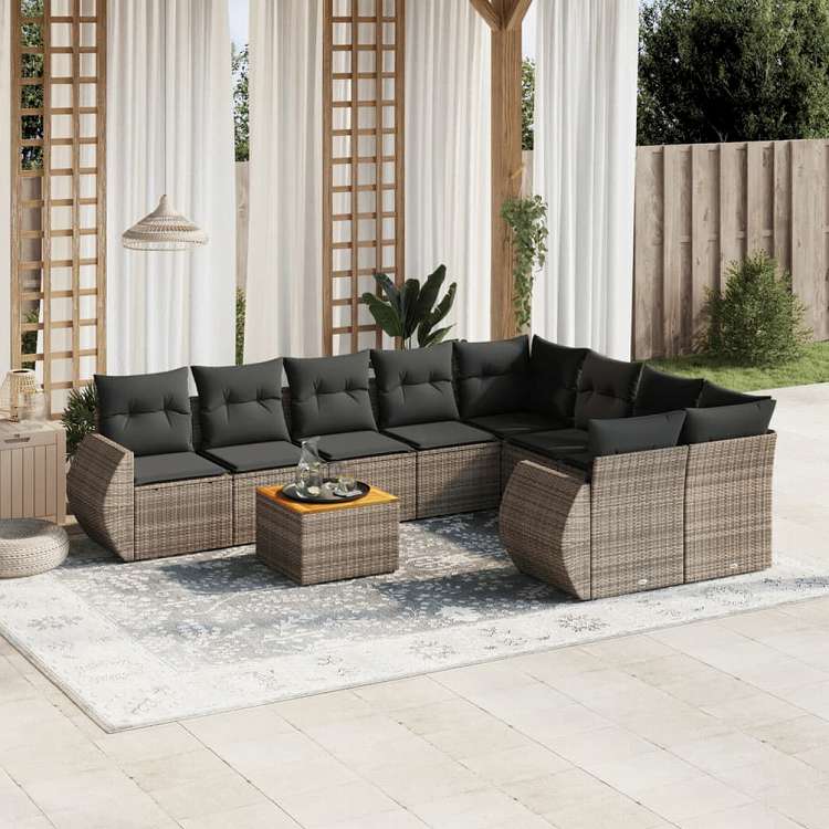 vidaXL ガーデンソファ9点セット クッション付き ポリラタン製 グレー家具 アウトドア家具 屋外家具セット(代引不可)