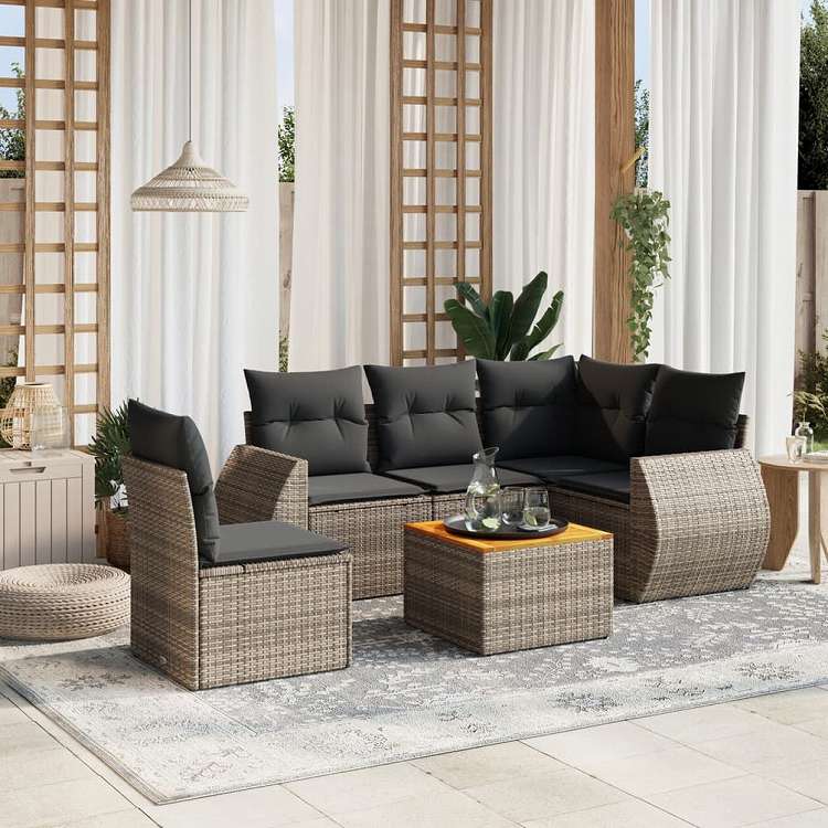 vidaXL ガーデンソファ6点セット クッション付き グレー ポリラタン製家具 アウトドア家具 屋外家具セット(代引不可)