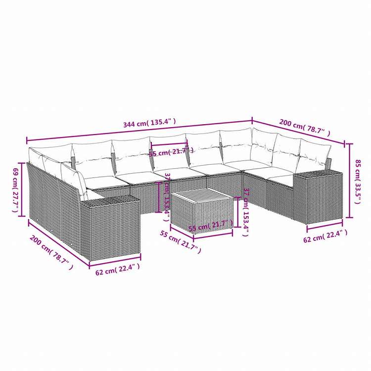 vidaXL ガーデンソファ11点セット クッション付き ポリラタン製 グレー家具 アウトドア家具 屋外家具セット(代引不可)