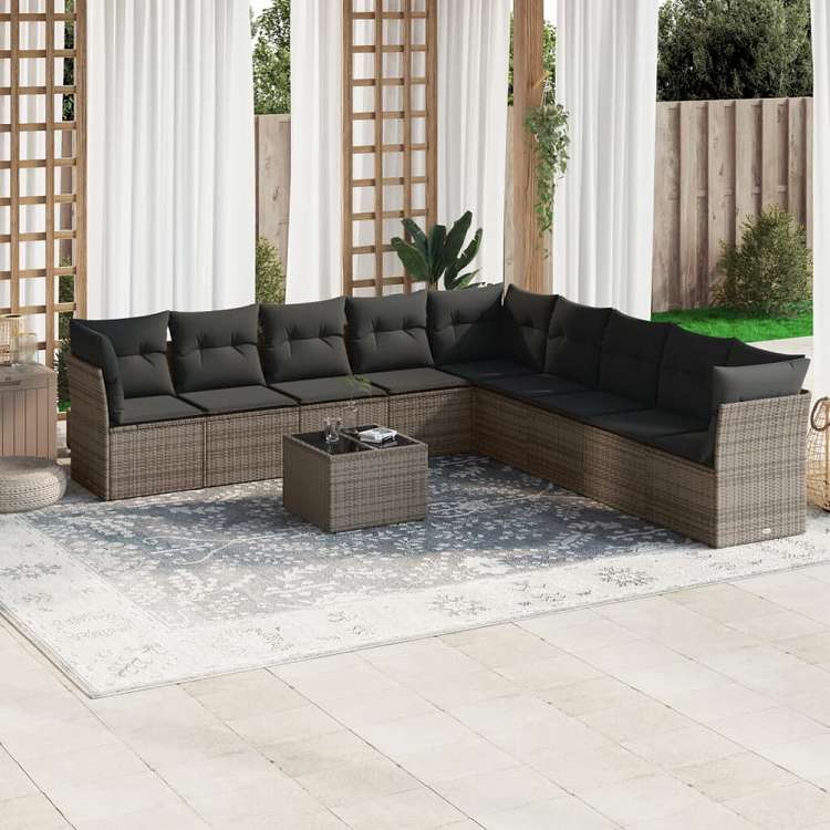vidaXL ガーデンソファ10点セット クッション付き ポリラタン製 グレー家具 アウトドア家具 屋外家具セット(代引不可)