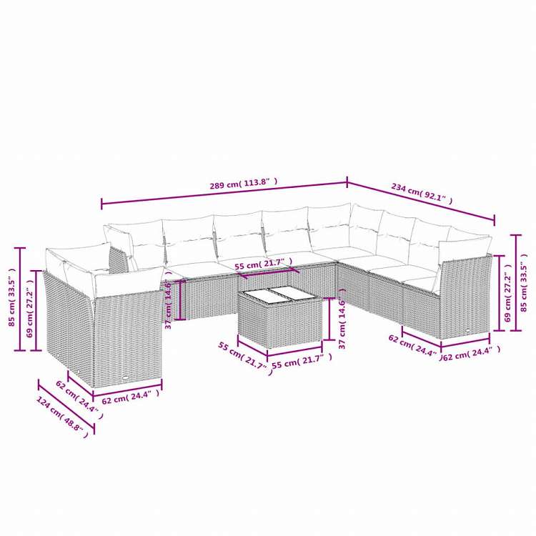 ■8人掛けソファ全体サイズ:289 x 234 x 69 cm (幅 x 奥行き x 高さ)