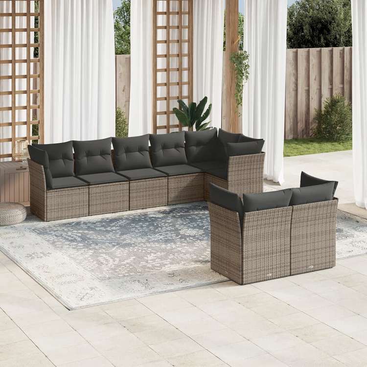 vidaXL ガーデンラウンジ8点セット クッション付き グレー ポリラタン製家具 アウトドア家具 屋外家具セット(代引不可)
