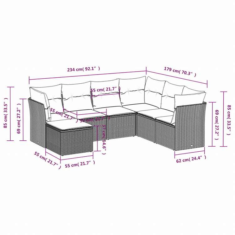 ■モジュラーデザイン: この屋外用家具セットはモジュラーデザインなので、フレキシブルに移動でき、屋外用家具の配置をカスタマイズできます。 便利情報:アウトドア家具の美しさを保つため、防水カバーをかぶせておくことを推奨します。ソファ全体サイズ:234 x 179 x 69 cm (幅 x 奥行き x 高さ)