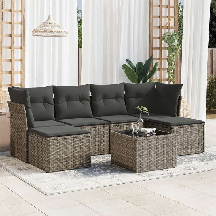 vidaXL ガーデンソファ7点セット クッション付き グレー ポリラタン家具 アウトドア家具 屋外家具セット(代引不可)