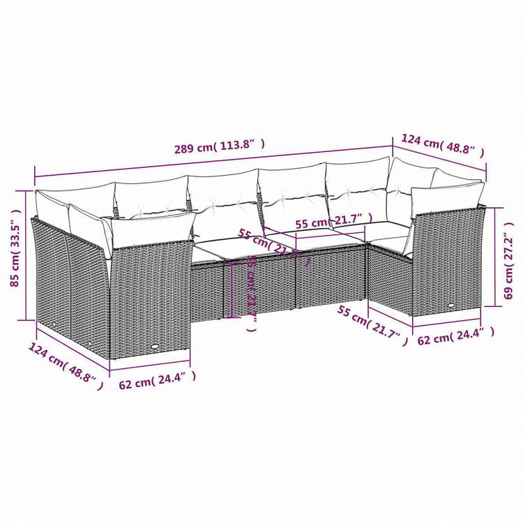 ■モジュラーデザイン: この屋外用家具セットはモジュラーデザインなので、フレキシブルに移動でき、屋外用家具の配置をカスタマイズできます。 便利情報:アウトドア家具の美しさを保つため、防水カバーをかぶせておくことを推奨します。ソファ全体サイズ:289 x 124 x 69 cm (幅 x 奥行き x 高さ)