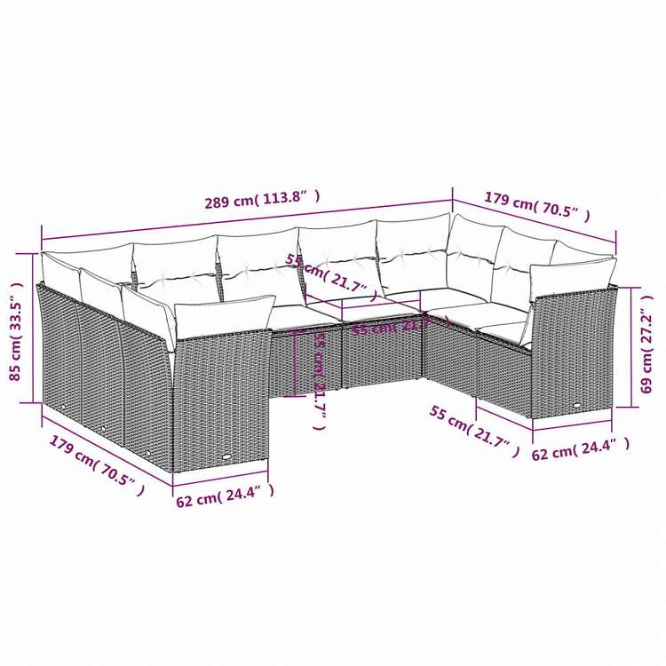 ■モジュラーデザイン: この屋外用家具セットはモジュラーデザインなので、フレキシブルに移動でき、屋外用家具の配置をカスタマイズできます。 便利情報:アウトドア家具の美しさを保つため、防水カバーをかぶせておくことを推奨します。ソファ全体サイズ:289 x 179 x 69 cm (幅 x 奥行き x 高さ)