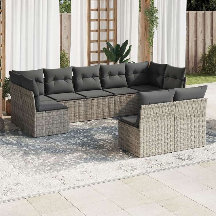 vidaXL ガーデンソファ9点セット クッション付き ポリラタン製 グレー家具 アウトドア家具 屋外家具セット(代引不可)