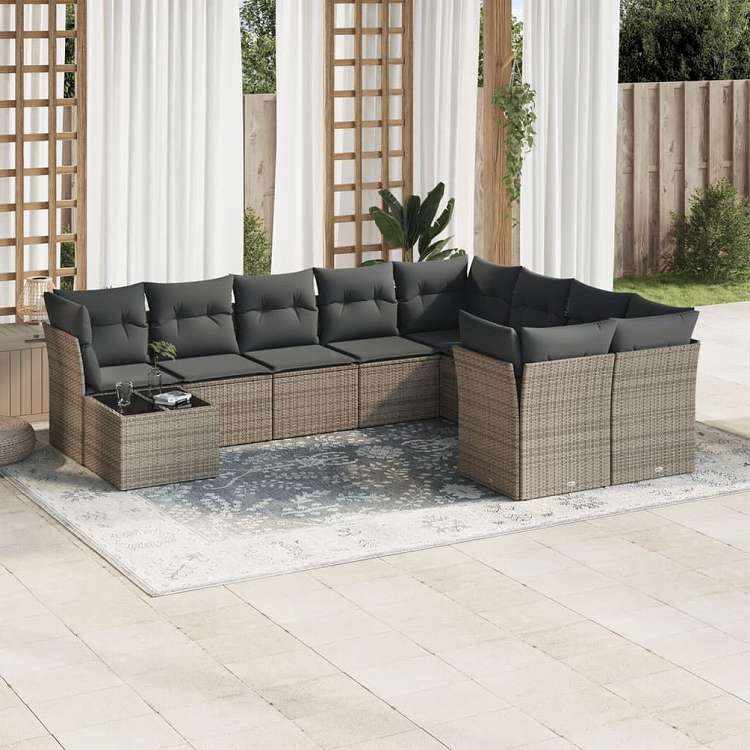vidaXL ガーデンソファ10点セット クッション付き ポリラタン製 グレー家具 アウトドア家具 屋外家具セット(代引不可)