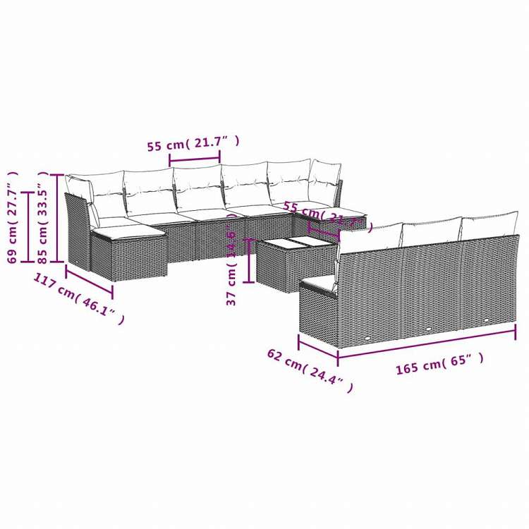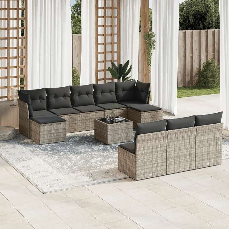 vidaXL ガーデンソファ11点セット クッション付き ポリラタン製 グレー家具 アウトドア家具 屋外家具セット(代引不可)