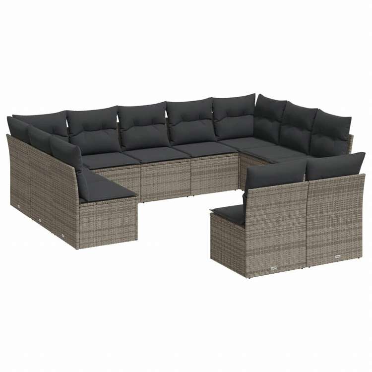 vidaXL ガーデンソファ11点セット クッション付き ポリラタン製 グレー家具 アウトドア家具 屋外家具セット(代引不可)