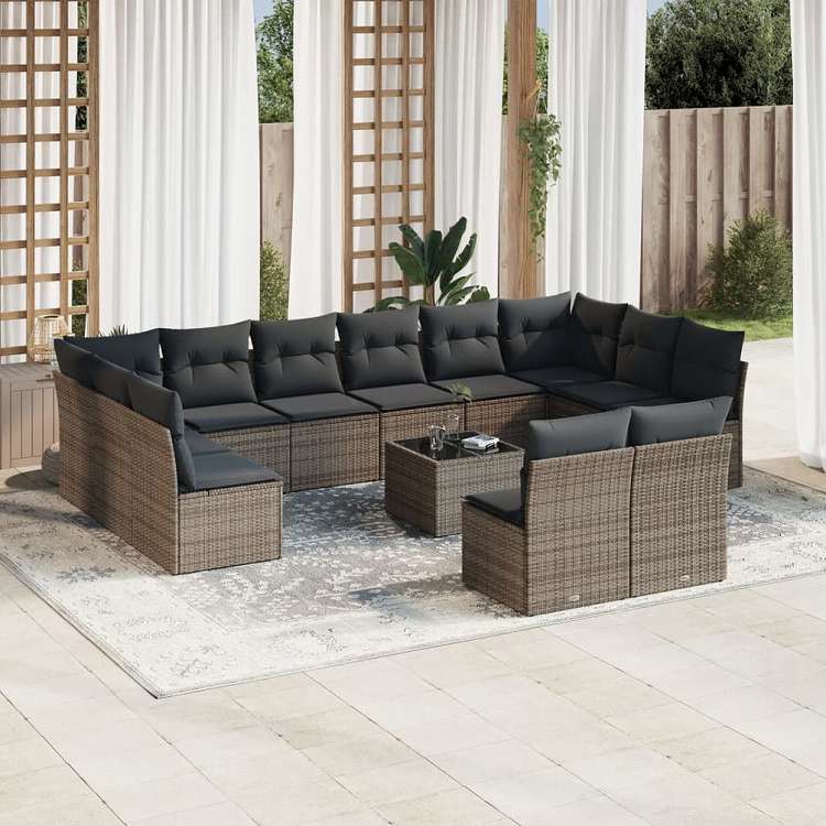 vidaXL ガーデンラウンジ13点セット クッション付き グレー ポリラタン製家具 アウトドア家具 屋外家具セット(代引不可)