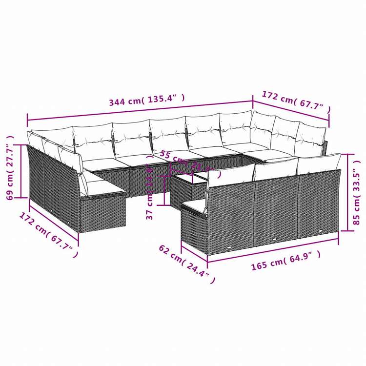 ■背面クッションサイズ:55 x 45 x 13 cm (幅 x 奥行き x 厚さ)