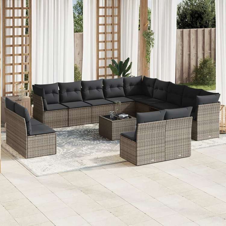 vidaXL ガーデンラウンジ14点セット クッション付き グレー ポリラタン製家具 アウトドア家具 屋外家具セット(代引不可)