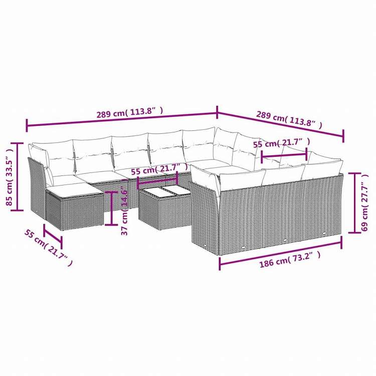 vidaXL ガーデンラウンジ13点セット クッション付き グレー ポリラタン製家具 アウトドア家具 屋外家具セット(代引不可)