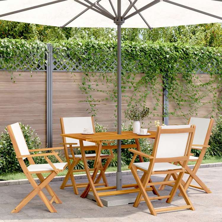 vidaXL 折りたたみ式ガーデンチェア 4点 クリームホワイト ファブリック&無垢材家具 アウトドア家具 屋外椅子 アウトドアベンチチェア(代引不可)