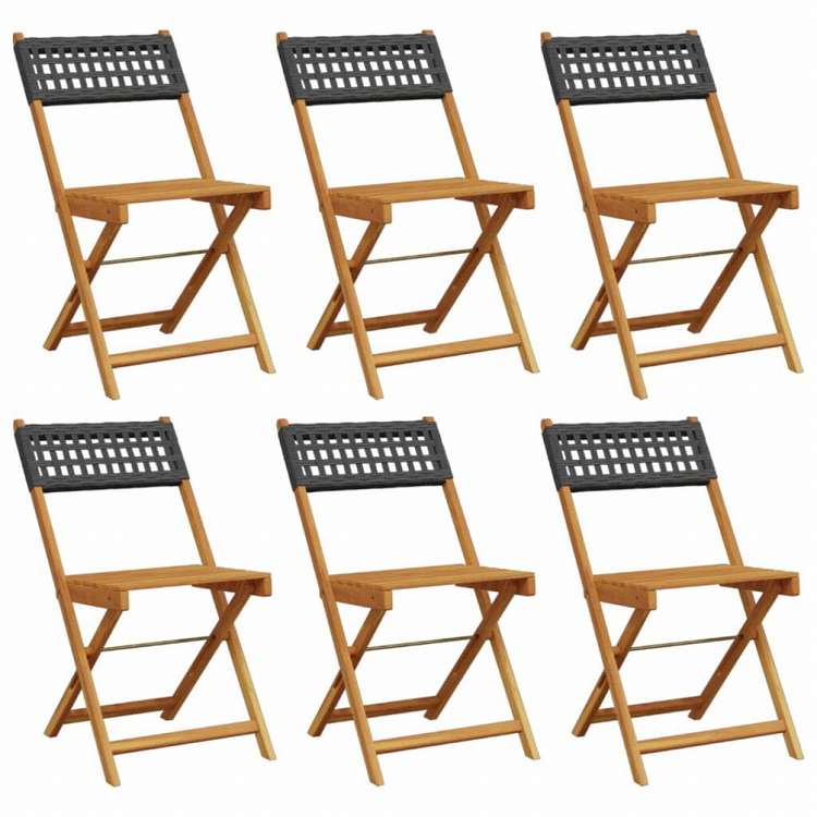 vidaXL 折りたたみガーデンチェア 6点 ブラック ポリラタン&無垢材家具 アウトドア家具 屋外椅子 アウトドアベンチチェア(代引不可)
