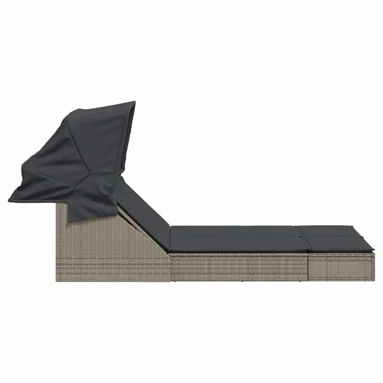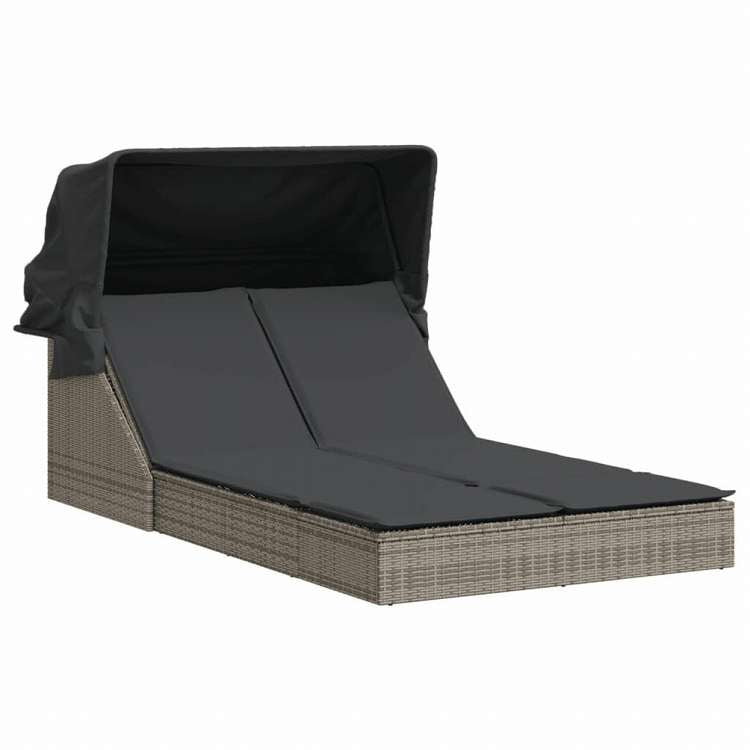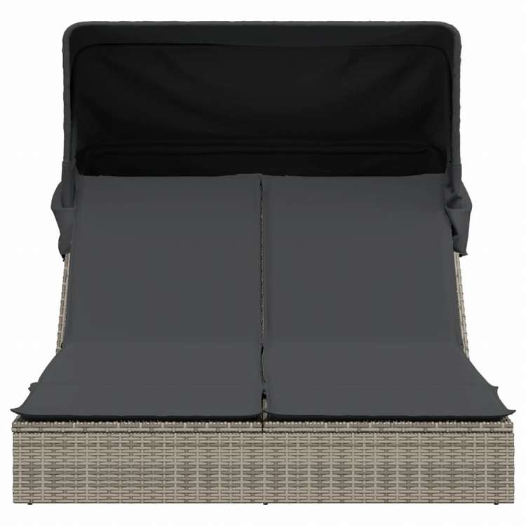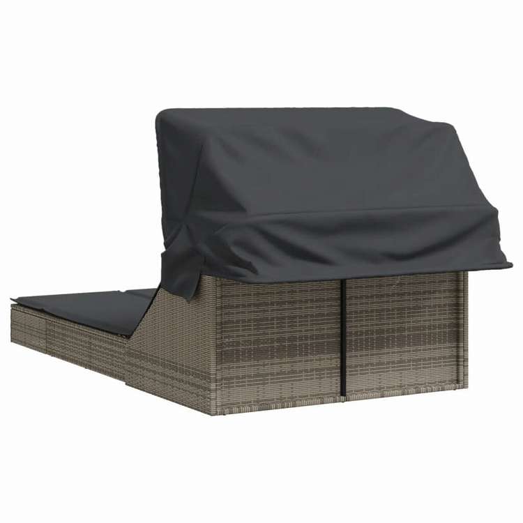vidaXL ダブルサンラウンジャー キャノピー&クッション付き グレー ポリラタン家具 アウトドア家具 屋外椅子 サンラウンジャー(代引不可)