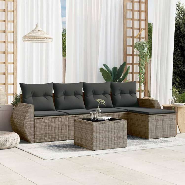 vidaXL ガーデンソファ6点セット クッション付き グレー ポリラタン製家具 アウトドア家具 屋外家具セット(代引不可)