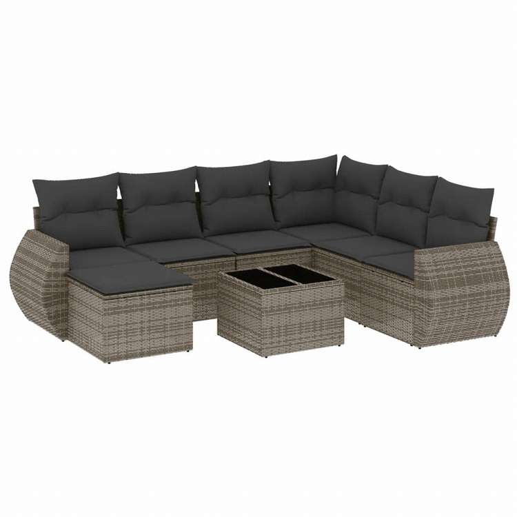 vidaXL ガーデンラウンジ8点セット クッション付き グレー ポリラタン製家具 アウトドア家具 屋外椅子 屋外用組み合わせソファセット(代引不可)