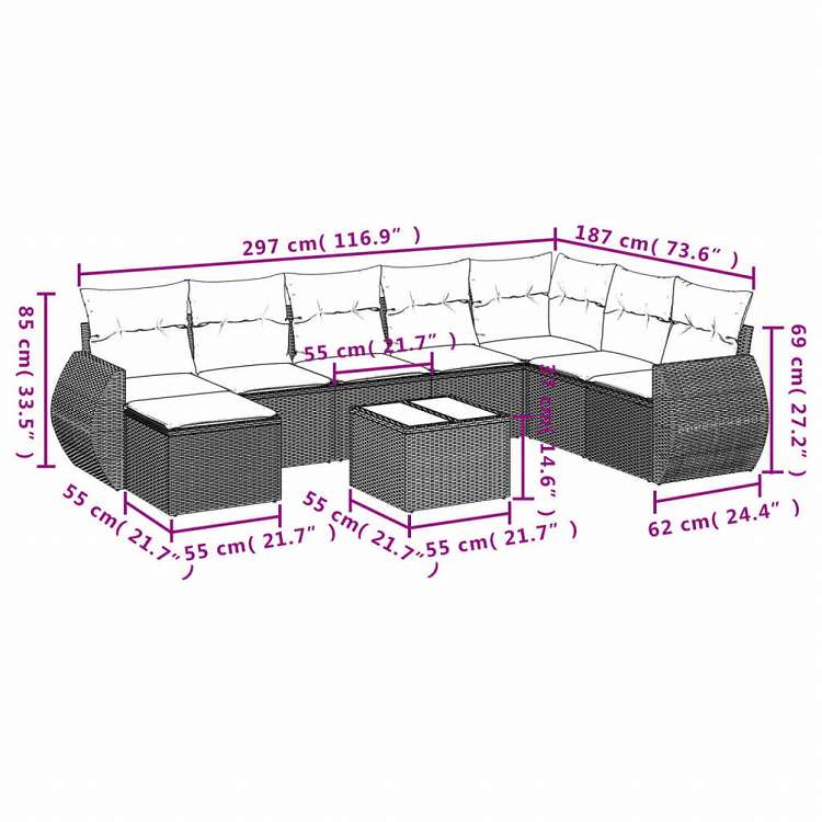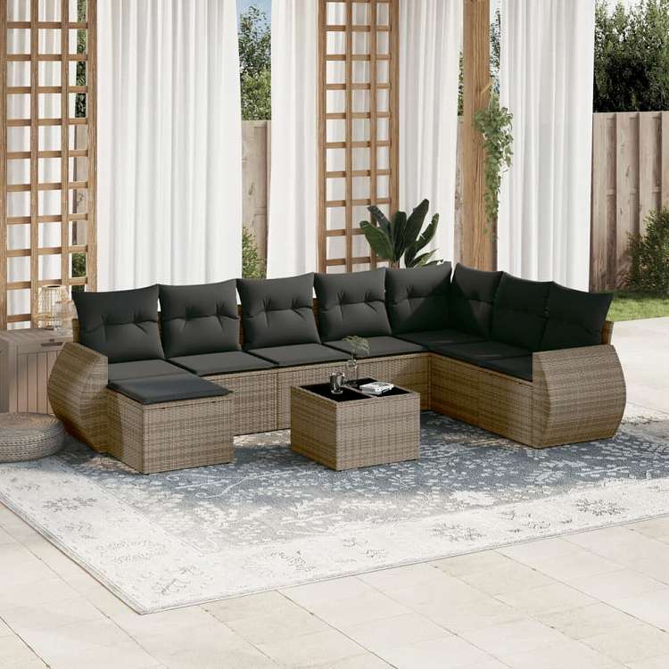vidaXL ガーデンソファ9点セット クッション付き ポリラタン製 グレー家具 アウトドア家具 屋外椅子 屋外用組み合わせソファセット(代引不可)