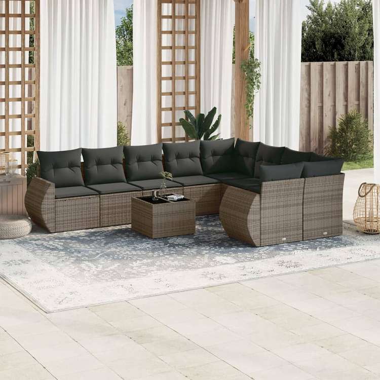 vidaXL ガーデンソファ10点セット クッション付き ポリラタン製 グレー家具 アウトドア家具 屋外椅子 屋外用組み合わせソファセット(代引不可)