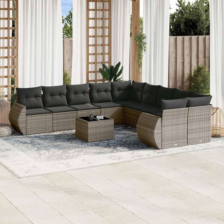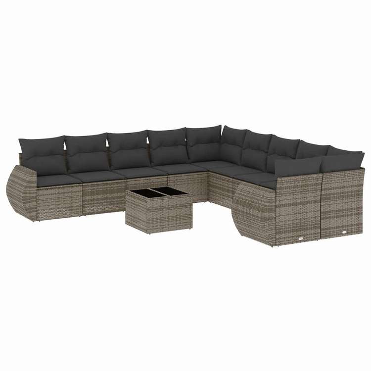 vidaXL ガーデンソファ11点セット クッション付き ポリラタン製 グレー家具 アウトドア家具 屋外椅子 屋外用組み合わせソファセット(代引不可)