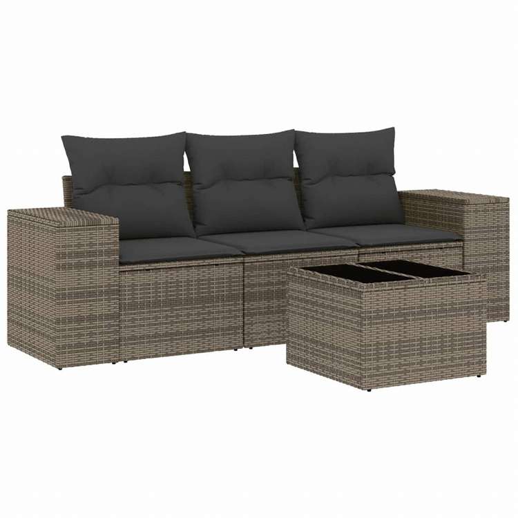 vidaXL ガーデンソファ4点セット クッション付き 灰色 ポリラタン製家具 アウトドア家具 屋外椅子 屋外用組み合わせソファセット(代引不可)