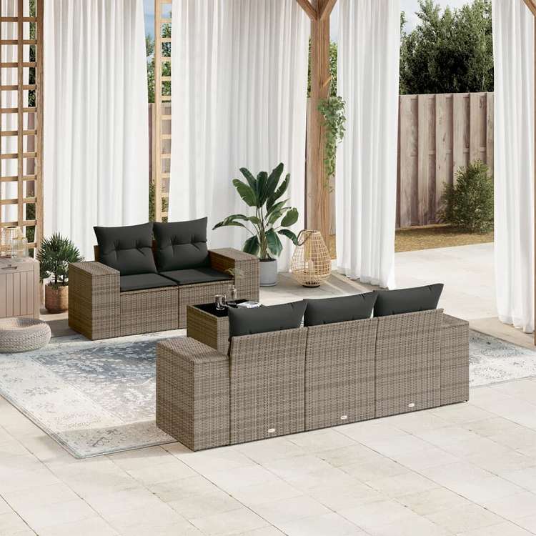 vidaXL ガーデンソファ6点セット クッション付き グレー ポリラタン製家具 アウトドア家具 屋外椅子 屋外用組み合わせソファセット(代引不可)