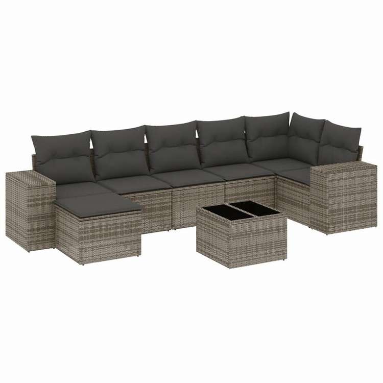 vidaXL ガーデンラウンジ8点セット クッション付き グレー ポリラタン製家具 アウトドア家具 屋外家具セット(代引不可)