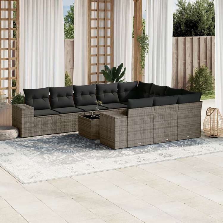 vidaXL ガーデンソファ11点セット クッション付き ポリラタン製 グレー家具 アウトドア家具 屋外家具セット(代引不可)