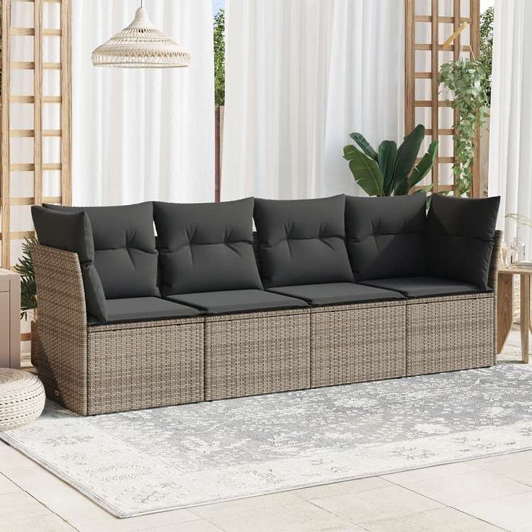 vidaXL ガーデンソファ4点セット クッション付き 灰色 ポリラタン製家具 アウトドア家具 屋外家具セット(代引不可)
