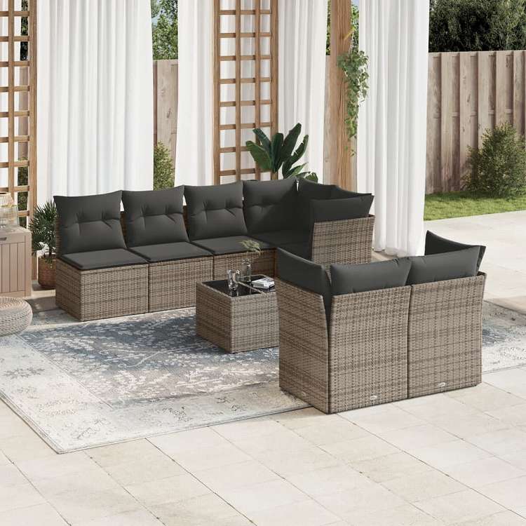 vidaXL ガーデンラウンジ8点セット クッション付き グレー ポリラタン製家具 アウトドア家具 屋外家具セット(代引不可)