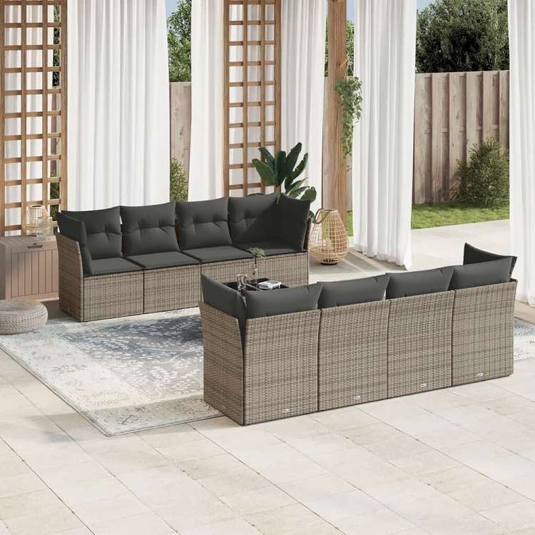 vidaXL ガーデンソファ9点セット クッション付き ポリラタン製 グレー家具 アウトドア家具 屋外家具セット(代引不可)