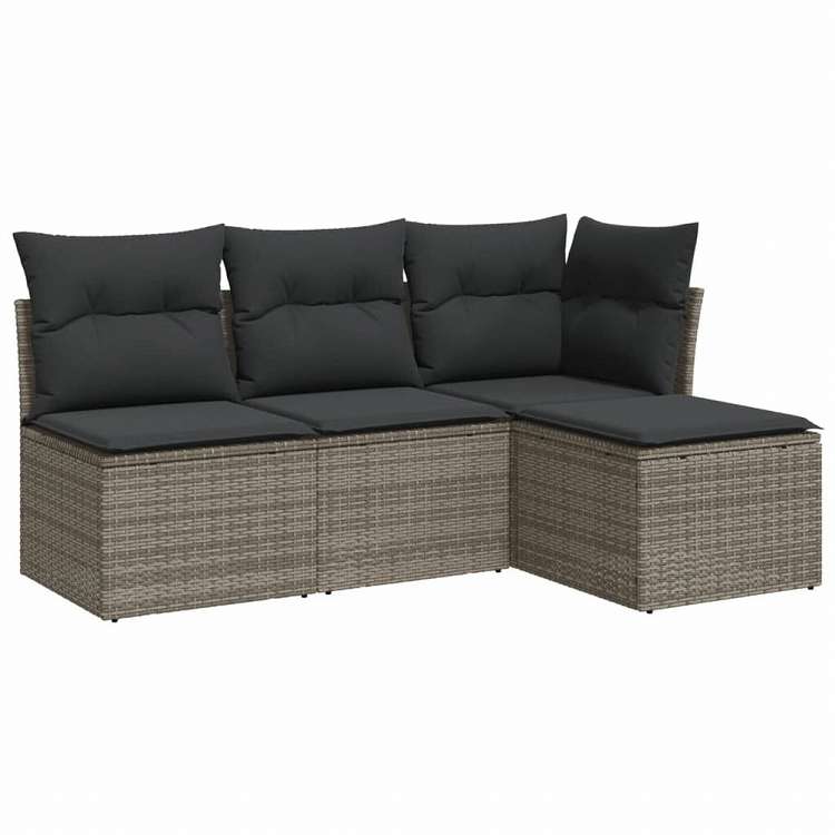 vidaXL ガーデンソファ4点セット クッション付き 灰色 ポリラタン製家具 アウトドア家具 屋外家具セット(代引不可)