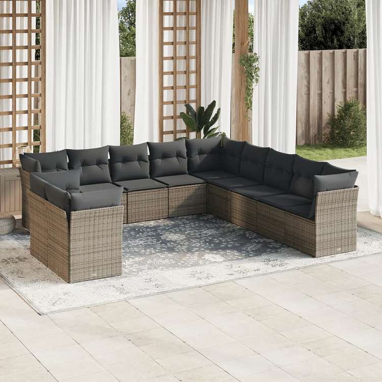 vidaXL ガーデンソファ11点セット クッション付き ポリラタン製 グレー家具 アウトドア家具 屋外家具セット(代引不可)