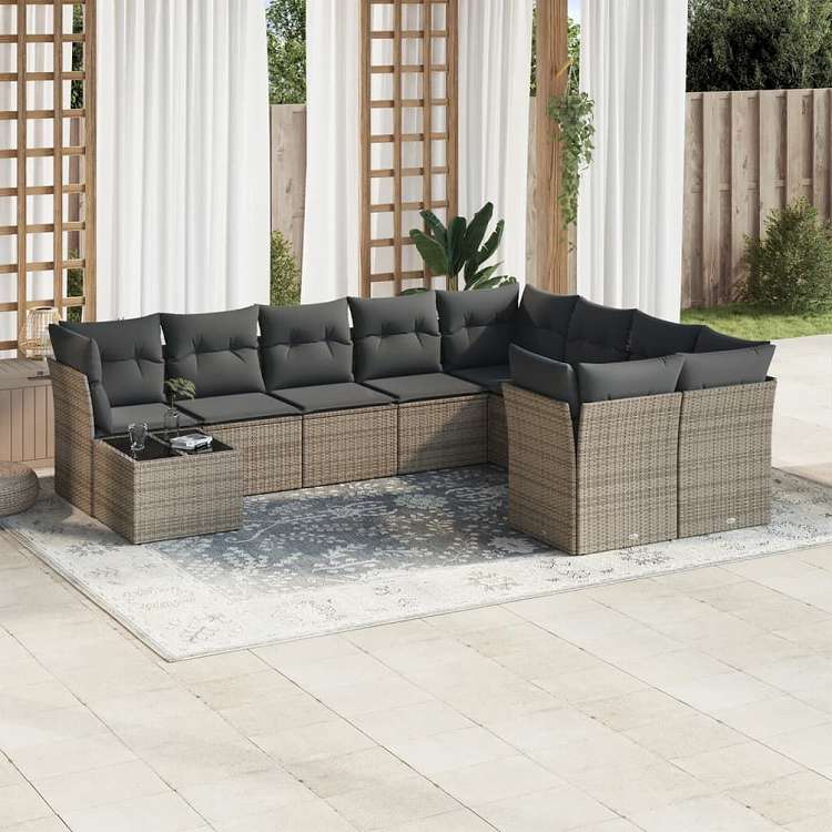 vidaXL ガーデンソファ10点セット クッション付き ポリラタン製 グレー家具 アウトドア家具 屋外家具セット(代引不可)