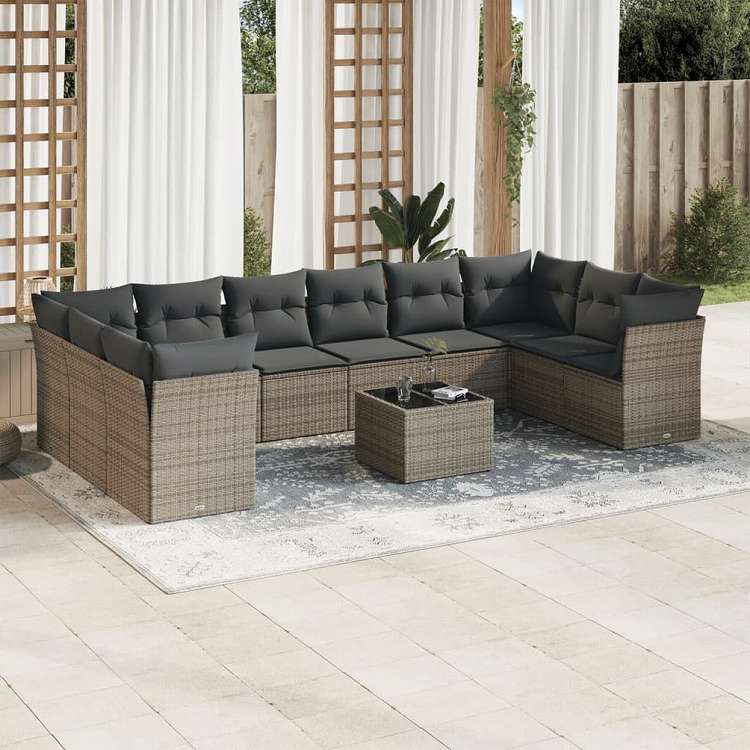 vidaXL ガーデンソファ11点セット クッション付き ポリラタン製 グレー家具 アウトドア家具 屋外家具セット(代引不可)