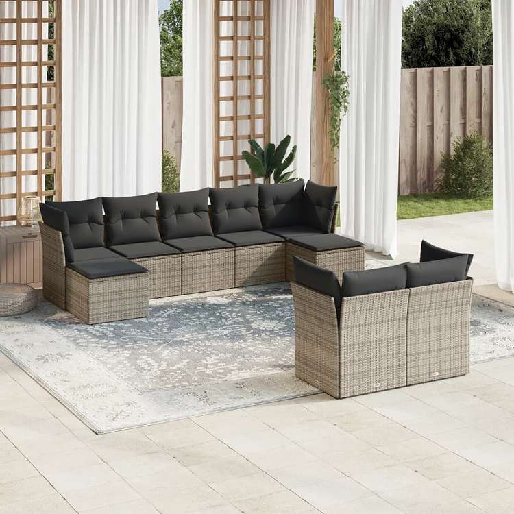 vidaXL ガーデンソファ9点セット クッション付き ポリラタン製 グレー家具 アウトドア家具 屋外家具セット(代引不可)