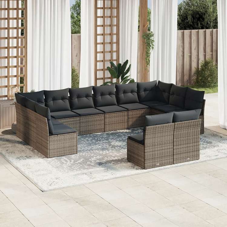 vidaXL ガーデンラウンジ12点セット クッション付き グレー ポリラタン製家具 アウトドア家具 屋外家具セット(代引不可)