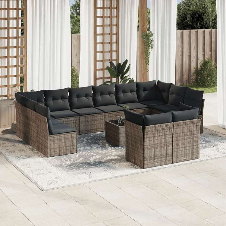 vidaXL ガーデンラウンジ13点セット クッション付き グレー ポリラタン製家具 アウトドア家具 屋外家具セット(代引不可)