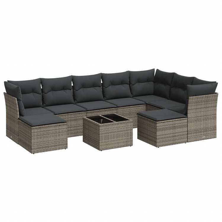 vidaXL ガーデンソファ10点セット クッション付き ポリラタン製 グレー家具 アウトドア家具 屋外家具セット(代引不可)