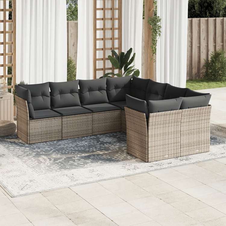 vidaXL ガーデンラウンジ8点セット クッション付き グレー ポリラタン製家具 アウトドア家具 屋外家具セット(代引不可)